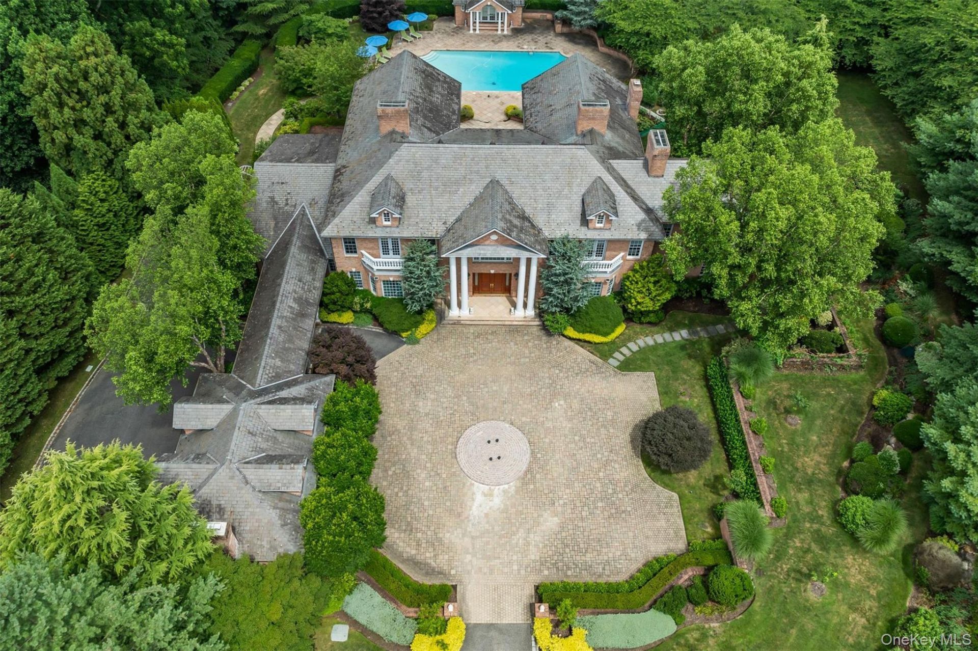 Nestled on 5.33 acres of pristine landscape, this stunning 2003 estate embodies sophisticated living at its finest. With approximately 16,500 square feet of meticulously designed interiors, this home offers a harmonious blend of grandeur and functionality. Featuring 6 spacious bedrooms, 9 full bathrooms, and 3 half bathrooms, this residence perfectly balances opulence with functionality. The grand foyer welcomes you into a world of exquisite detail, from the formal dining room to the inviting den, expansive family room, and refined home office. The gourmet eat-in kitchen, complete with granite countertops and dual ovens, is a dream for culinary enthusiasts. This home is brimming with luxurious amenities, including a 12-foot fully finished walk-out basement, multiple fireplaces, and an elevator for seamless accessibility. Modern conveniences are integrated throughout, with a state-of-the-art smart home system, dual washers and dryers, a whole-house generator, and 17 central air-conditioning units. Unique features such as a geothermal heating system, custom natural materials, and a secure escape passage reflect exceptional attention to quality and detail. Step outside to your private oasis, where leisure and recreation take center stage. The grounds feature blooming gardens that thrive across three seasons and a breathtaking 2,000-foot cherry blossom grove. Enjoy the heated in-ground pool, tennis court, basketball court, expansive patios, and balconies, all surrounded by lush, partly wooded scenery that ensures privacy and tranquility. Additional highlights include a 4-car garage, a central vacuum system, a top-tier security system, and built-in entertainment features. This estate exemplifies timeless elegance and modern luxury, making it one of Long Island's most coveted properties. Rarely does a property of this caliber become available-experience the perfect combination of elegance, innovation, and natural beauty in this unparalleled home., Additional information: Interior Features:Guest Quarters,Marble Bath